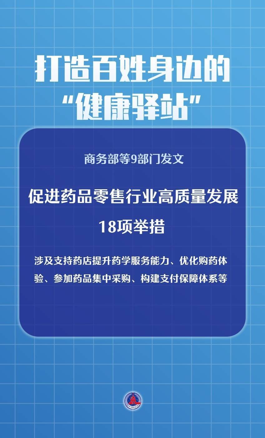 由商务部等9部门联合印发的关于促进药品零售行业高质量发展的意见1月22日对外发布。