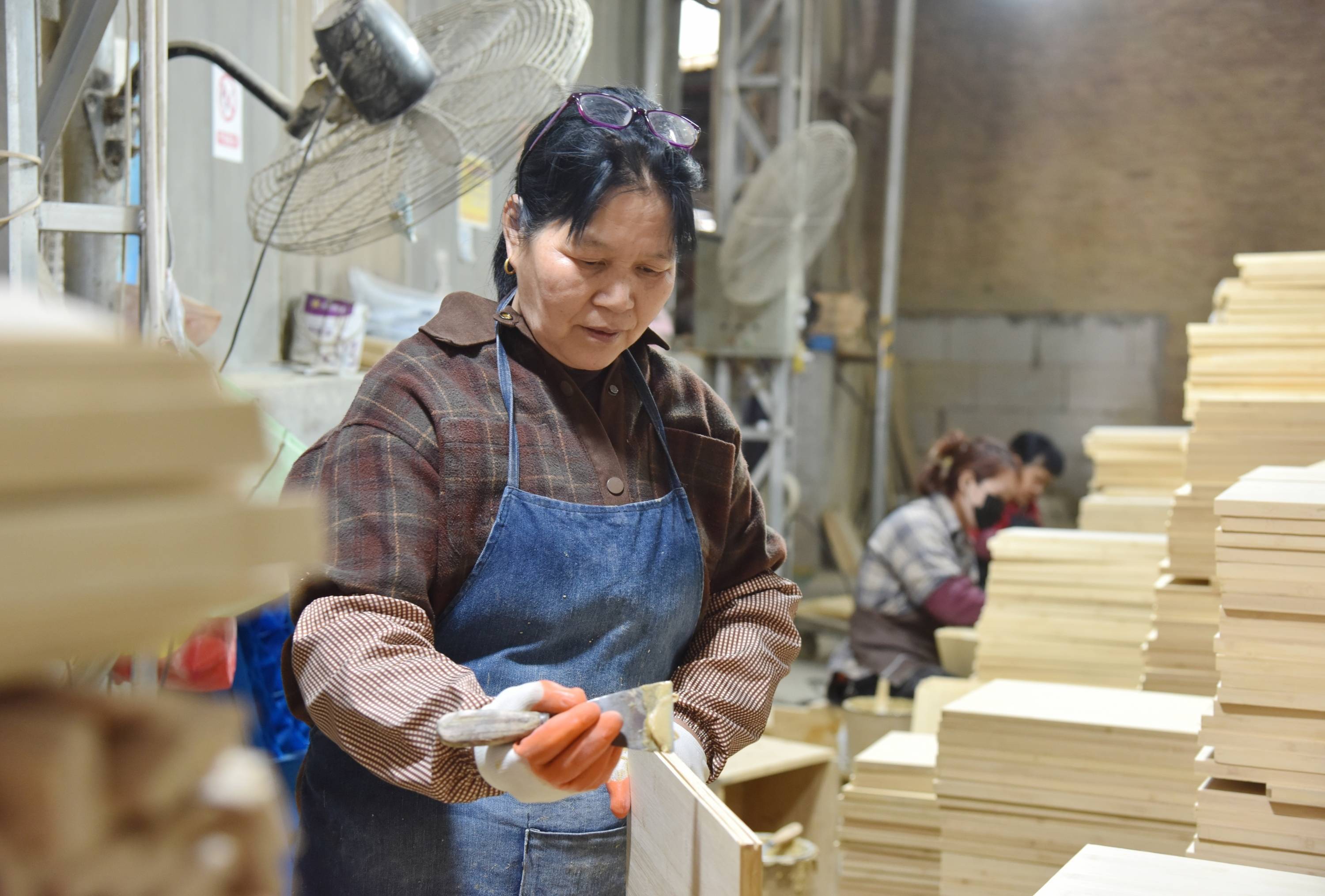 在福建品匠茶居科技有限公司车间里,一块块竹板经过切割、打磨、组装、上漆等工序,被加工成竹桌椅、竹衣柜等产品。春节后复工以来,工人们加紧生产、赶制订单。