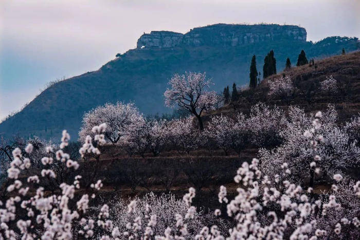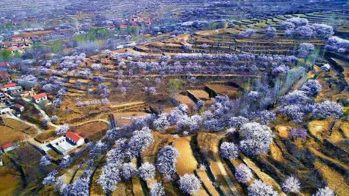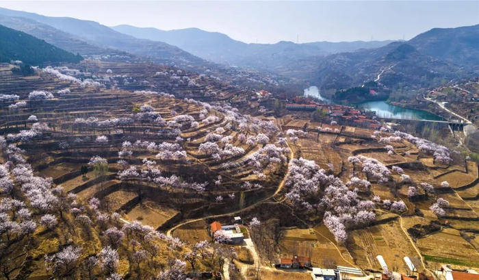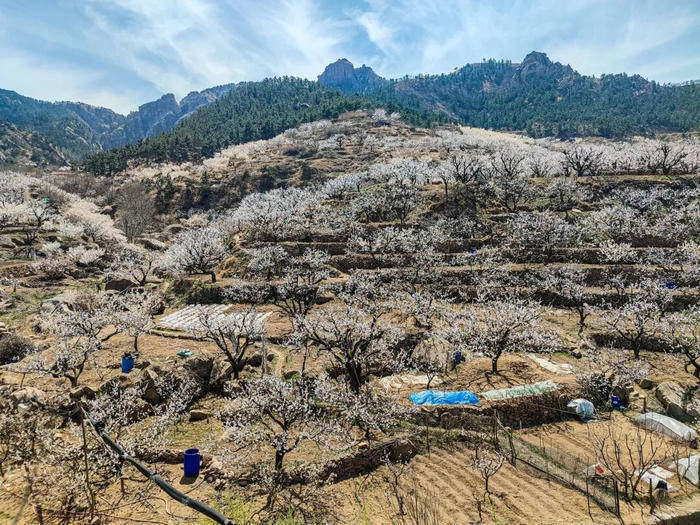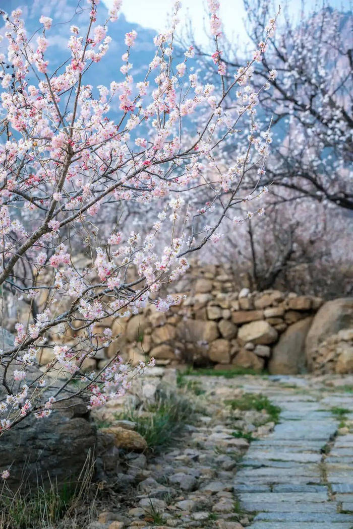 淄博的杏花,多藏在鲁中山区的村落与景区中,褪去了都市的喧嚣,多了几分古朴与苍茫,将山野装点得如梦如幻。