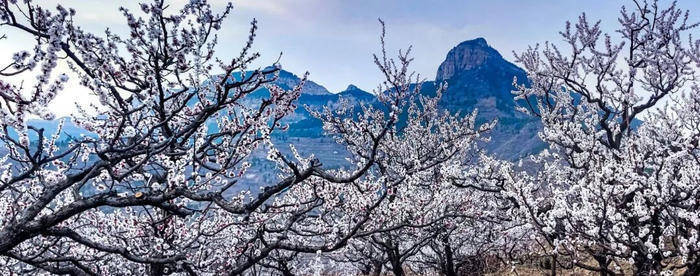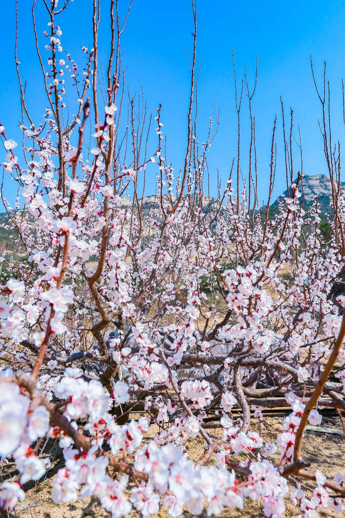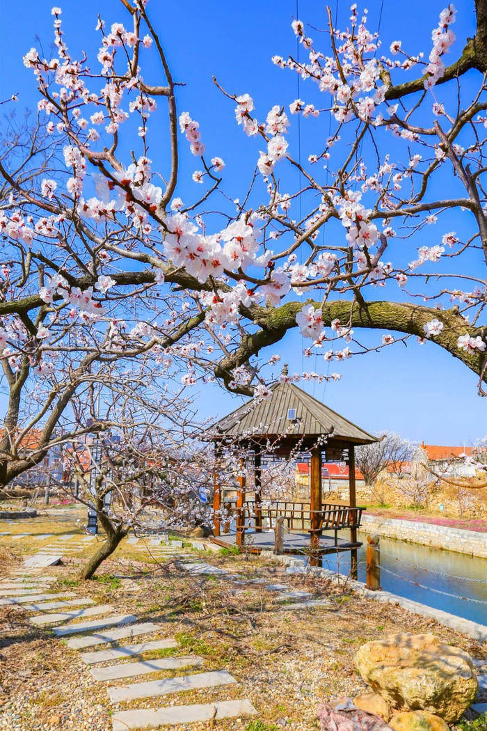 青岛的杏花,藏在山海之间,既有碧海蓝天的映衬,也有古村山野的静谧。