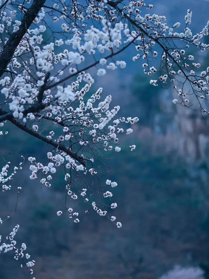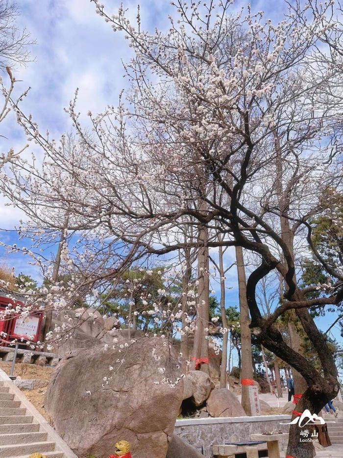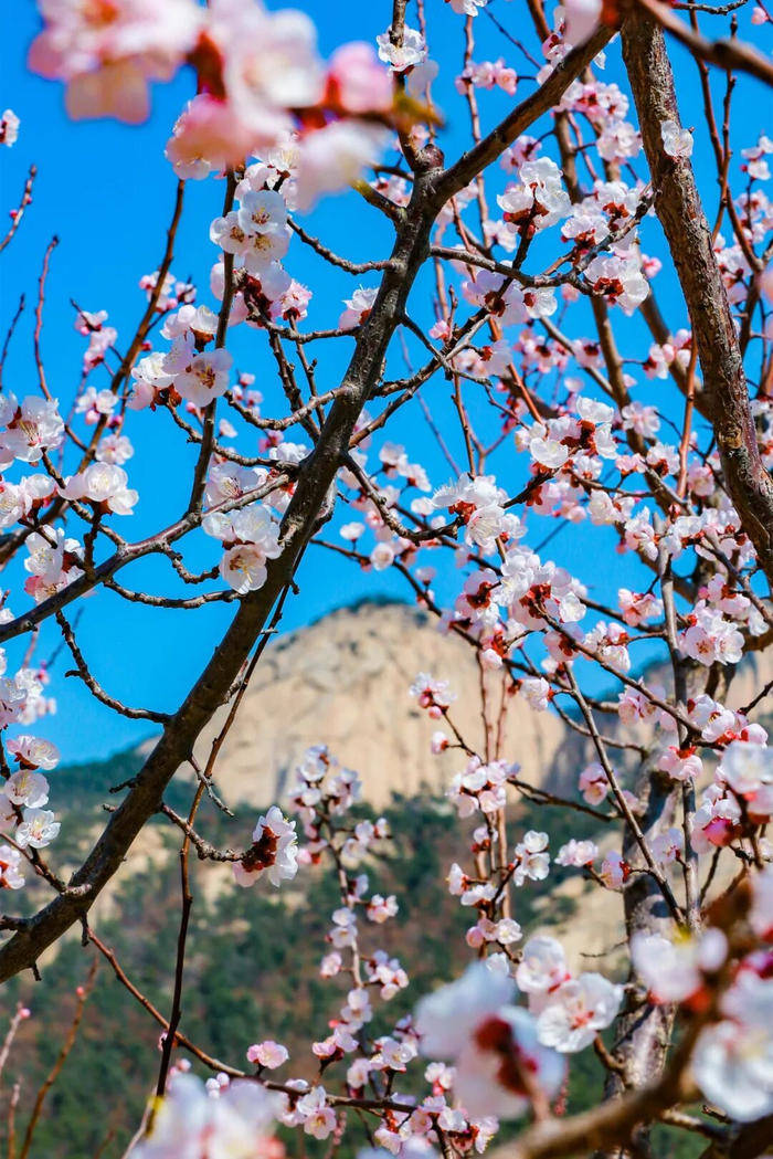 而崂山的杏花,藏在青山绿水间,依山而开,层层叠叠,粉白的花瓣映着崂山的苍翠,伴着山间溪流,意境悠远。