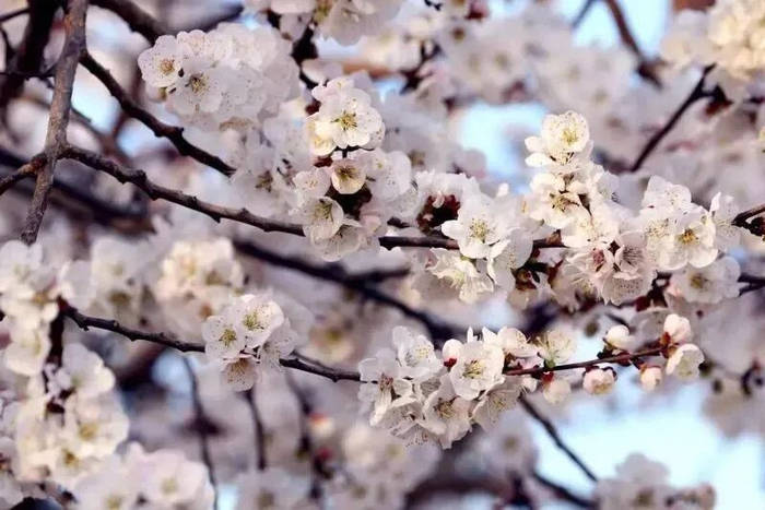 费县大田庄的杏花也即将绽放,春水绕花身,杏花向艳阳。一簇簇粉白色的杏花绽放在枝头,让人感到无比的清新和愉悦。