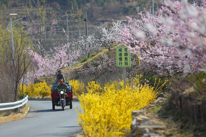 山间溪流潺潺,炊烟袅袅,漫步花间,既能感受花海的磅礴,也能体验乡村的静谧,还可探访义净寺,赶张夏商城大集,解锁春日乡村乐趣。
