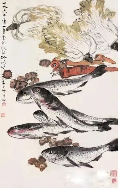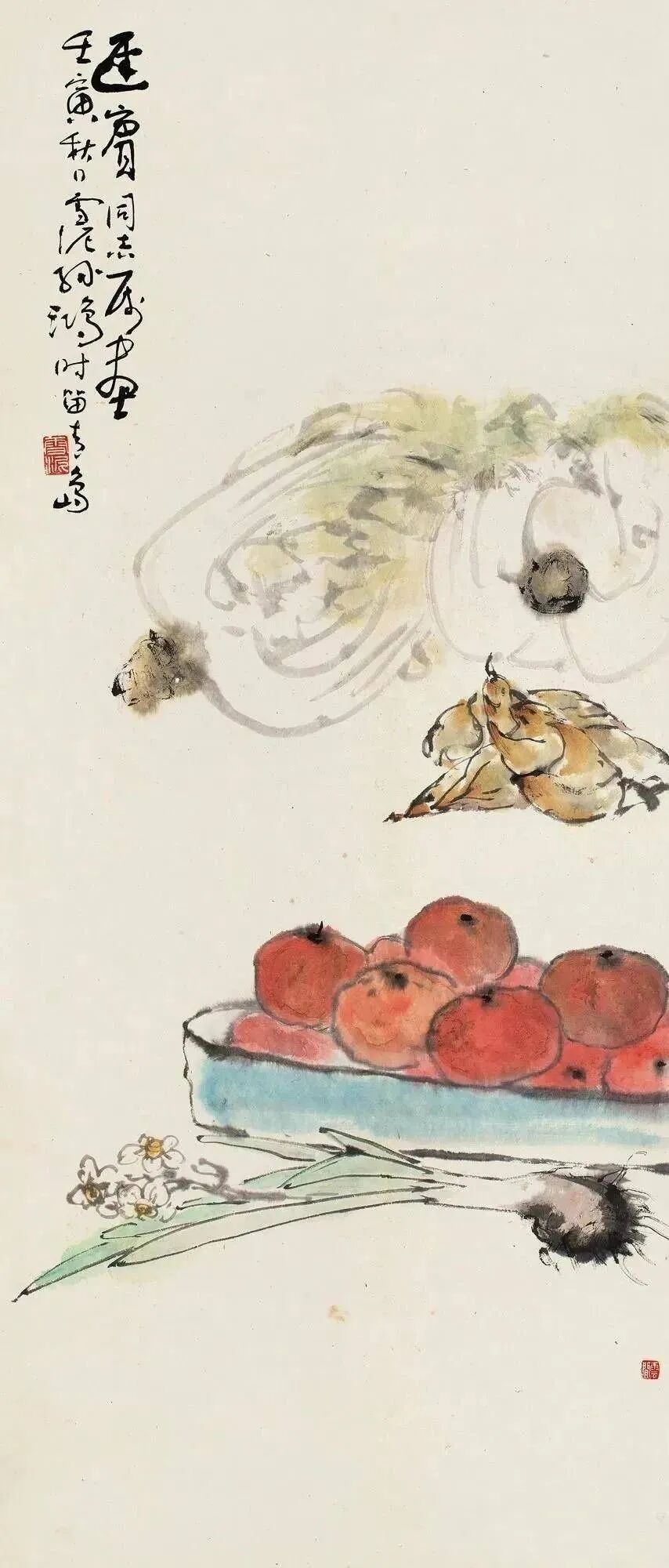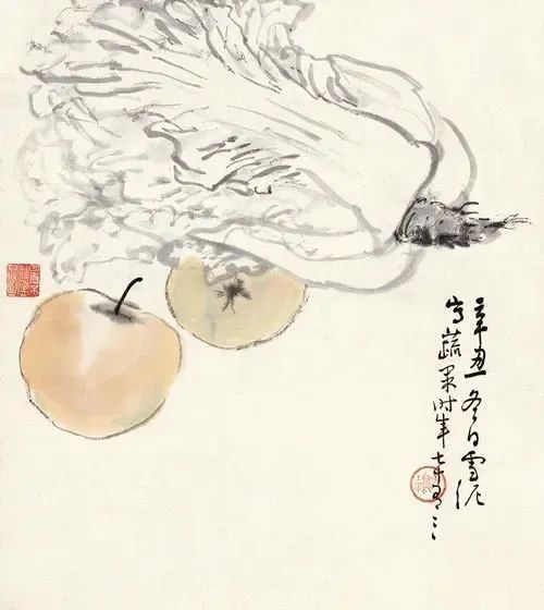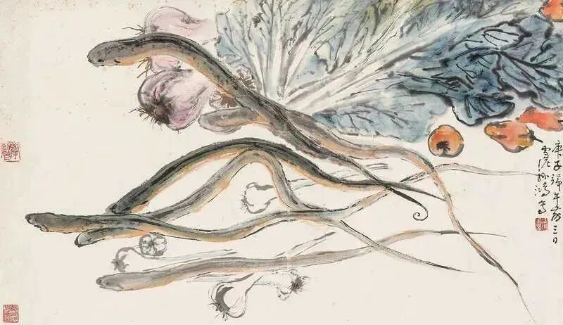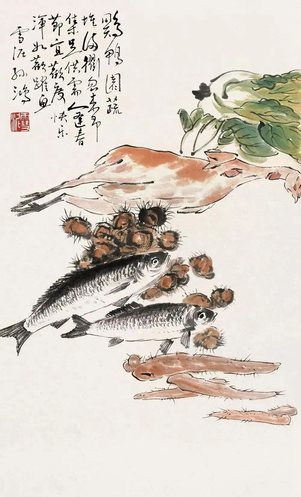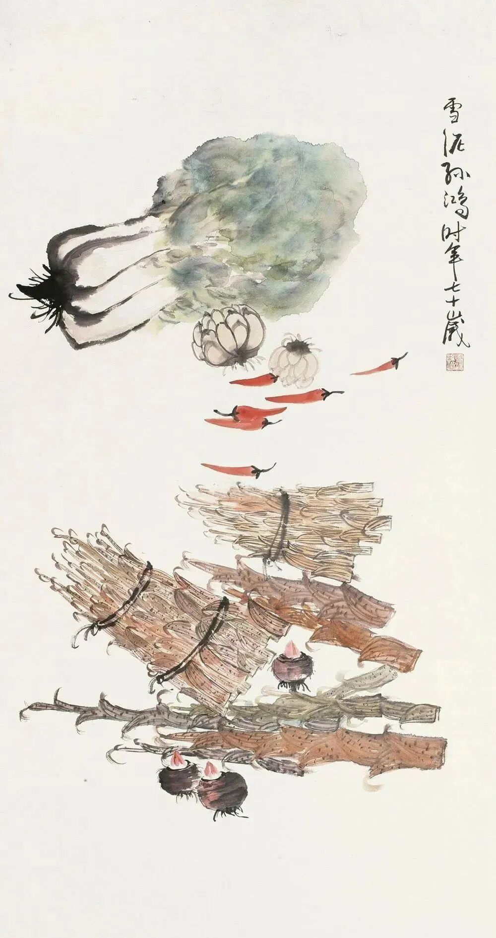 孙雪泥画白菜,没画啥高大上的东西,就是咱老百姓餐桌上的家常菜。可他这么一画,白菜就有了灵魂,有了故事。看着这画,就像闻到了厨房里白菜炖豆腐的香味,暖乎乎的,直往人心里头钻。