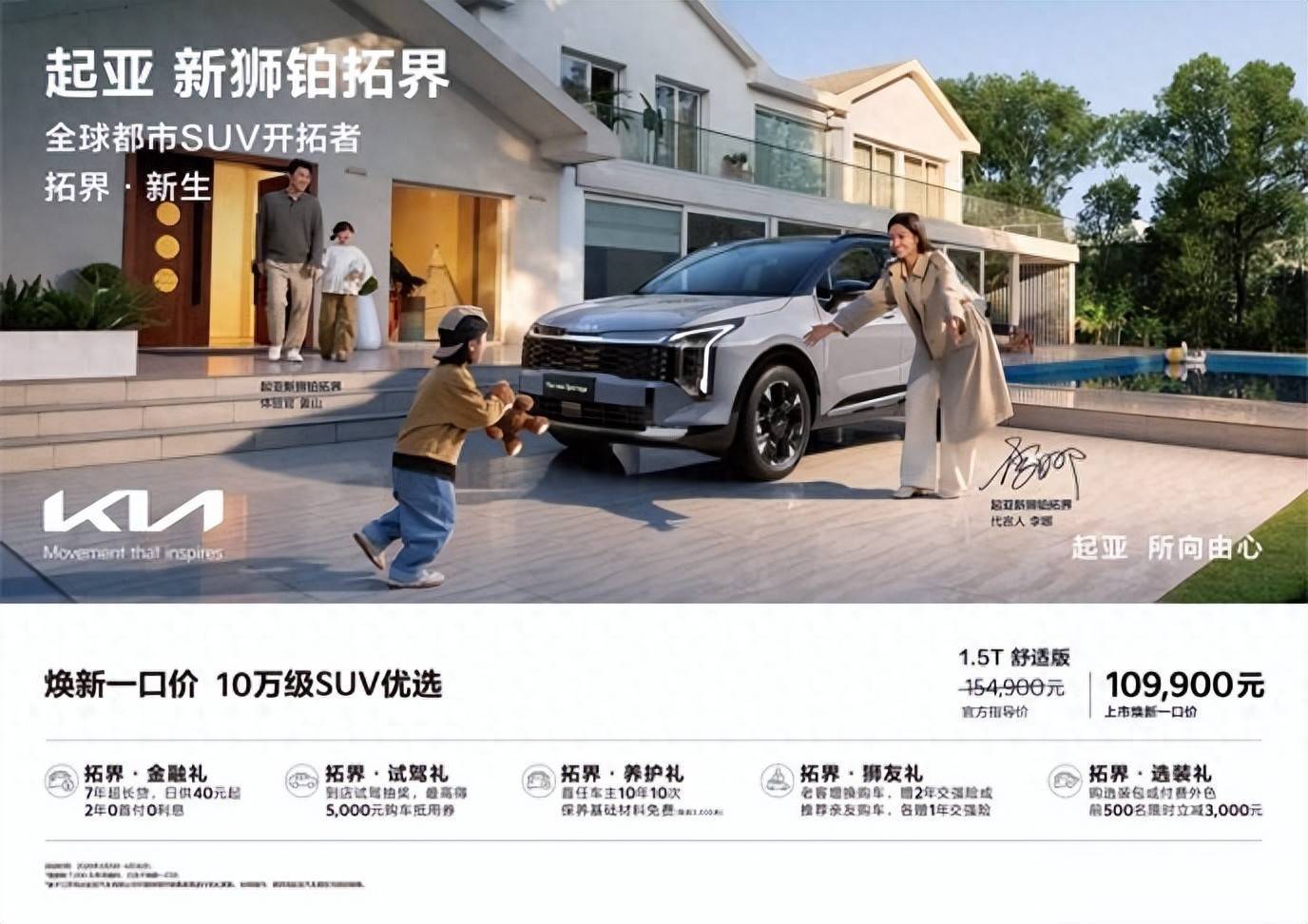 3月5日,起亚新狮铂拓界正式上市,共推出7款车型,并在中国首次提供X-Line专属运动设计包,官方指导价15.49万元-21.79万元。为回馈广大中国用户的信赖,即日起至4月30日,消费者购车即享全国统一“焕新一口价”10.99万元起!同时还可享金融礼、试驾礼、养护礼、狮友礼、选装礼5大尊享礼遇。上市即享“全国一口价”,这体现了悦达起亚对中国用户的满满诚意。