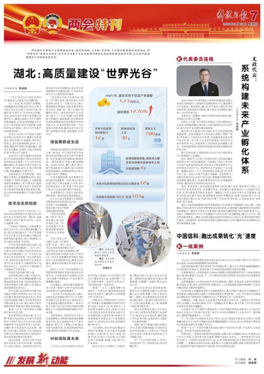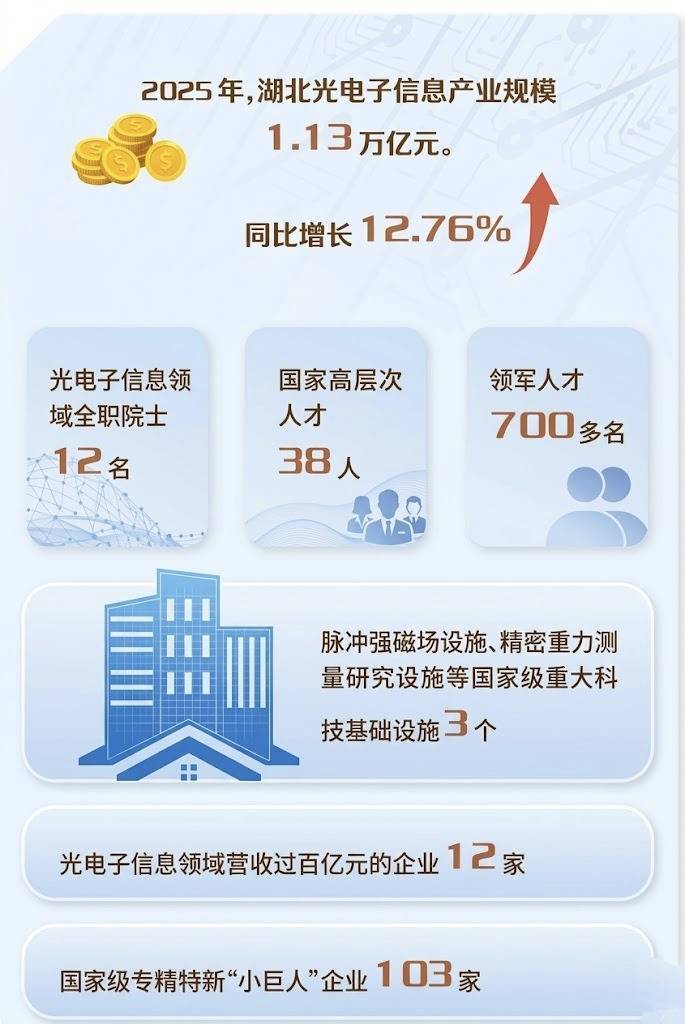 一批创新平台落地见效:九峰山实验室获评国家级中试平台,“芯光链”供应链平台注册用户过万,超200亿元产业基金投向硬科技领域……湖北光电子信息产业正在从单点突破迈向集群发力,让创新成果能够快速转化为产业优势。