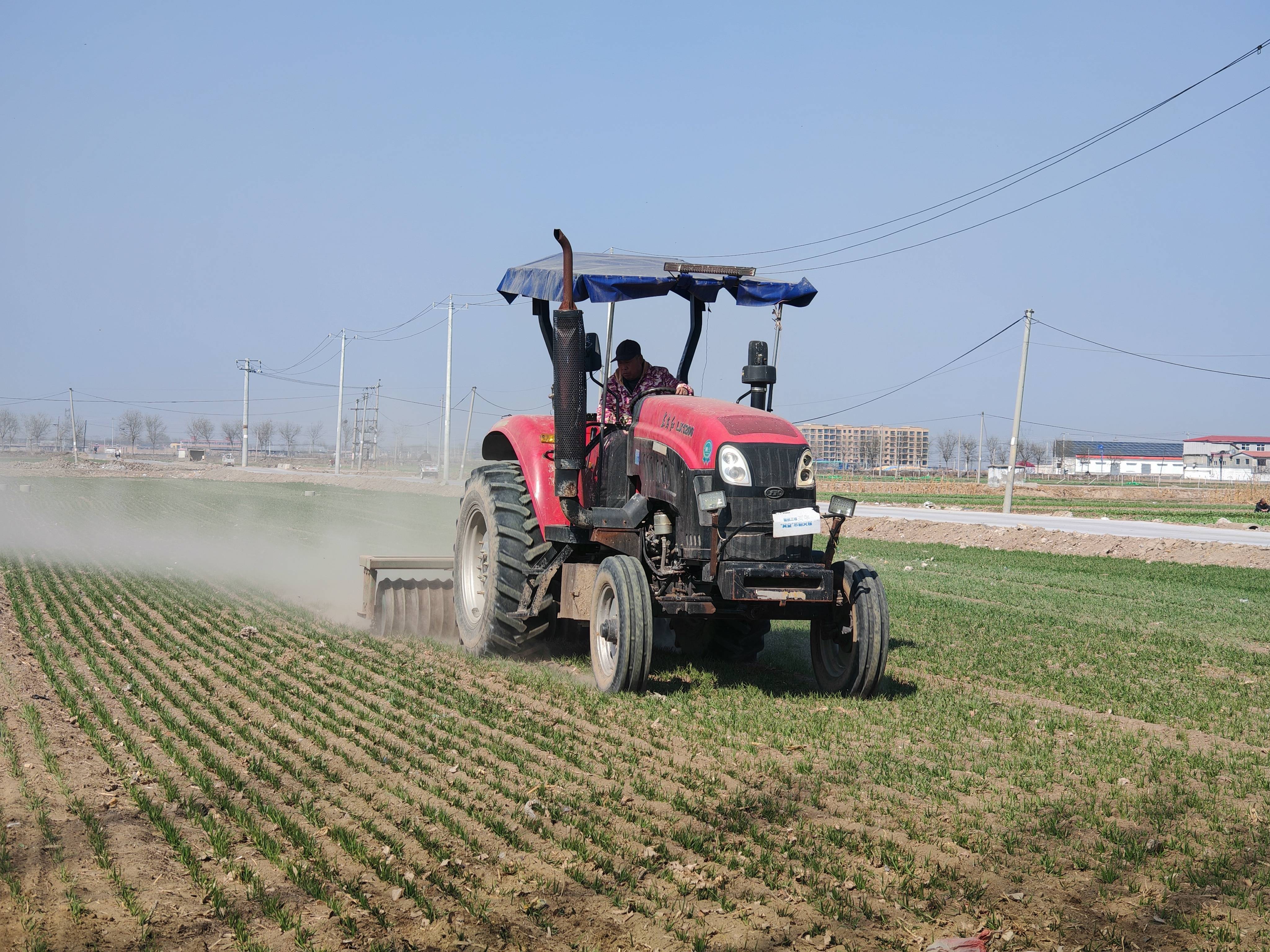 在河北省保定市望都县,农民驾驶镇压锄划机进行作业。新华社记者 王昆 摄在邯郸市广平县种粮大户烟金德的麦田里,一排排银色喷灌设备匀速旋转,细密水雾均匀洒落,为返青麦苗送去精准的水肥营养。